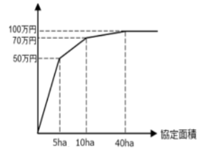 | 単価 | 10,000円/10a(〜5ha部分) 4,000円/10a(5〜10ha部分) 1,000円/10a(10〜40ha部分) (地目にかかわらず) |